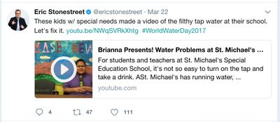 Woodie hasn't given up on the fight to bring clean water to Dameon's (our) school.